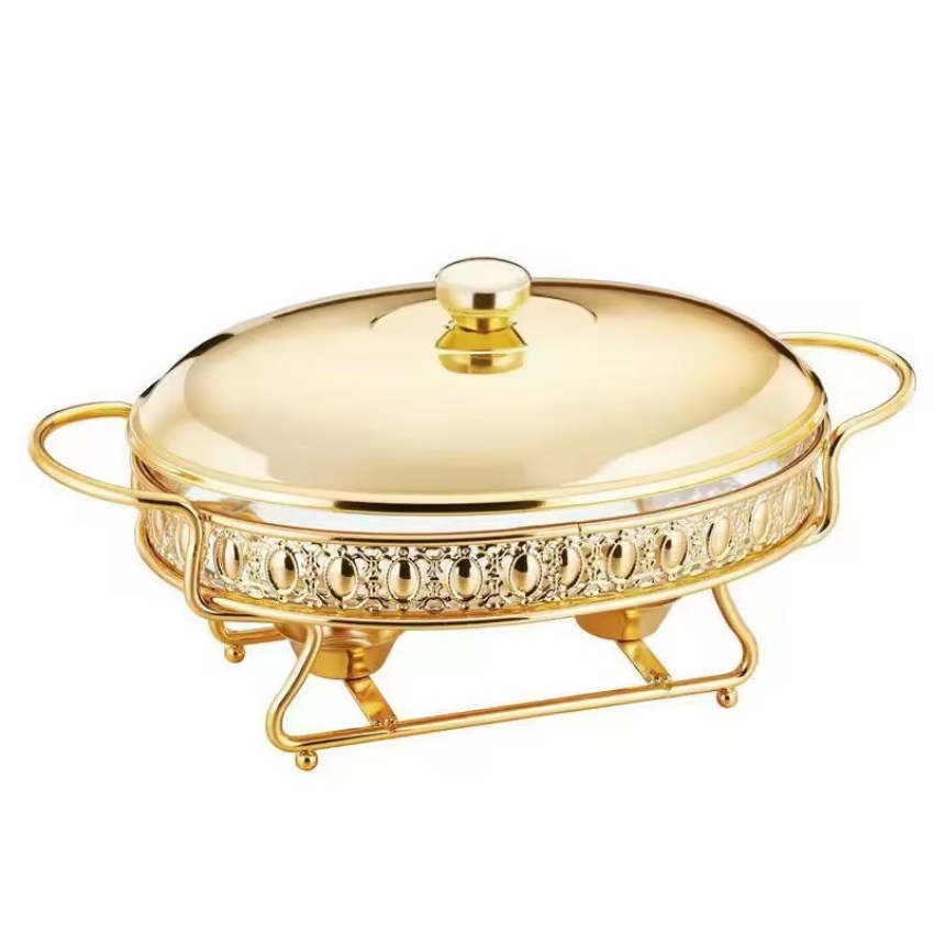 金色2L椭圆型花边玻璃酒精炉