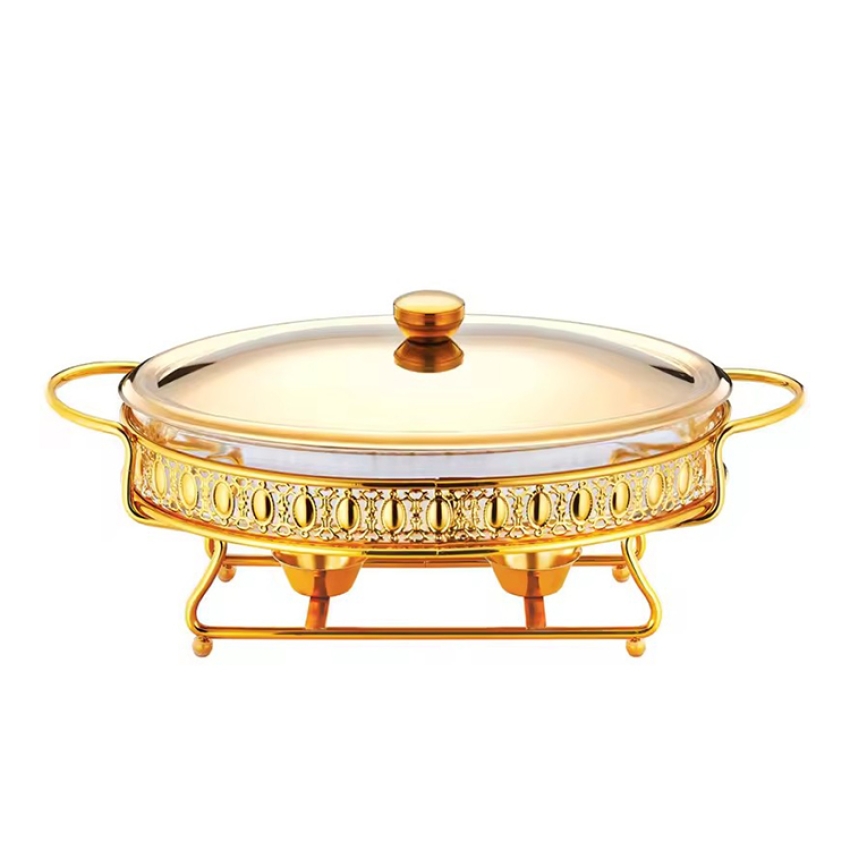 金色3L椭圆型花边玻璃酒精炉