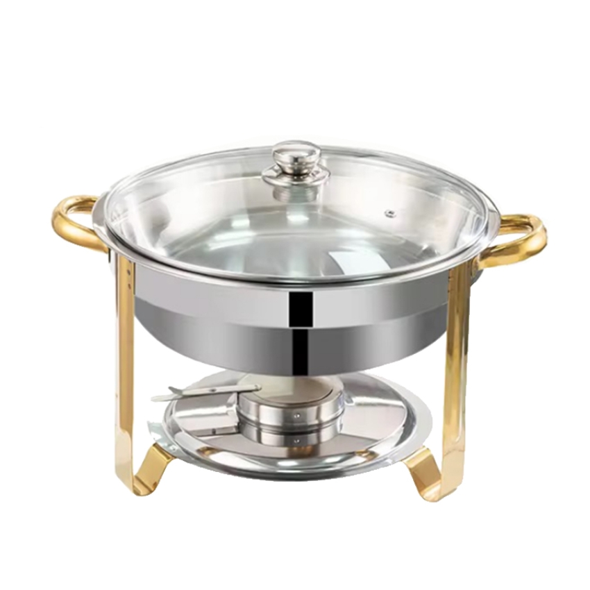 4.5L半镀金玻璃盖小圆餐炉