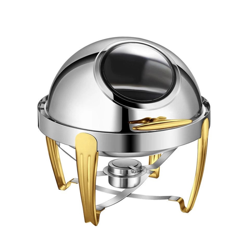镀金圆形虎脚全翻盖餐炉【可视盖】